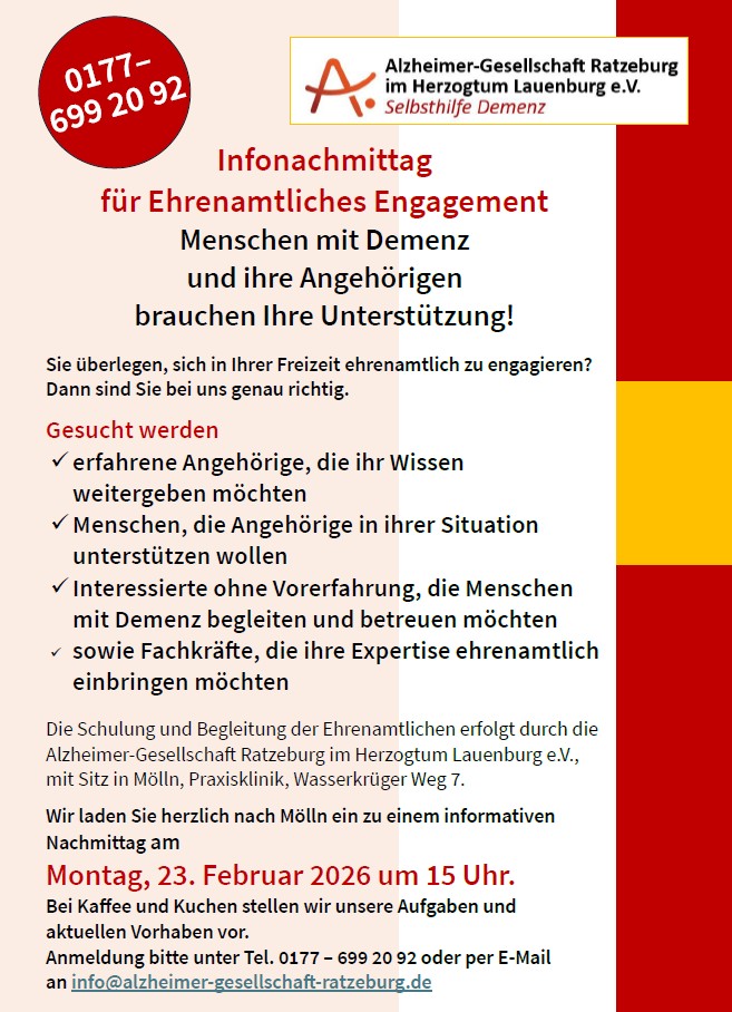 Alzheimer-Gesellschaft Ratzeburg - Infonachmittag für das Ehrenamt