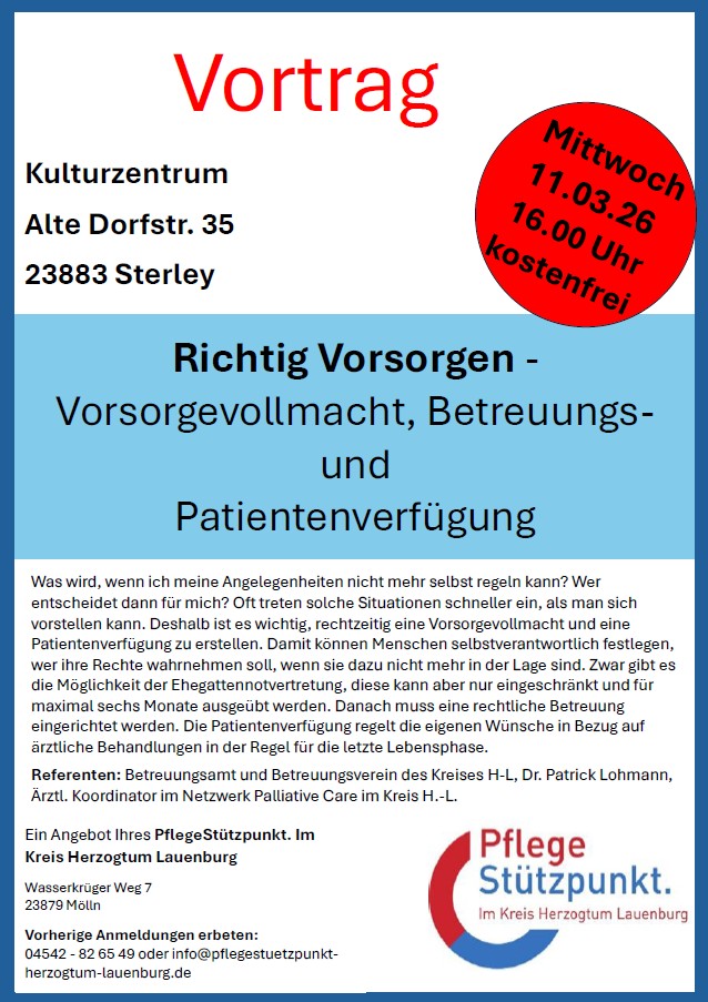 Sterley - Vortrag Richtig Vorsorgen: Vorsorgevollmacht, Betreuungs- und Patientenverfügung